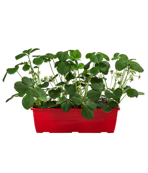 Der Erdbeerkasten wird nicht nur für besondere Nascherlebnisse sorgen, er sieht in dem knalligen Rot auch toll aus. Stellen Sie den Erdbeerkasten zwischen andere Kästen, Töpfe und Pflanzgefäße, in denen farbenfrohe Sommerblumen blühen und vielleicht auch ein paar aromatische Kräuter den Duft des Südens verbreiten.