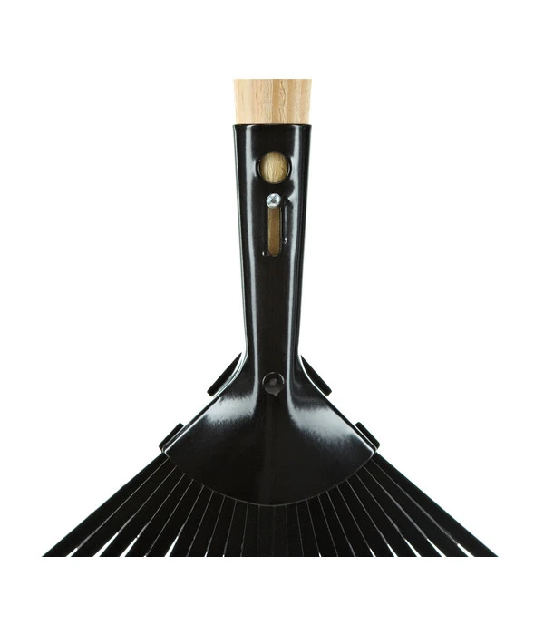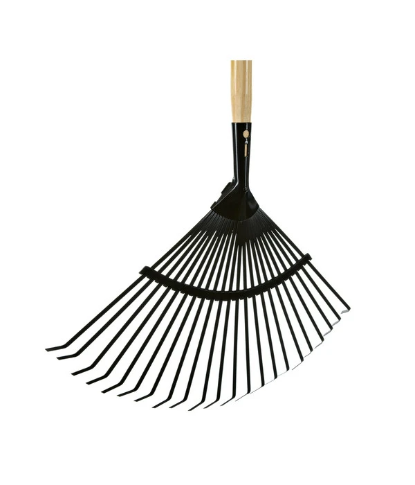 22 schwarz lackierte Zinken passen sich jeder Bodengegebenheit an, wenn Sie mit dem Freund Victoria Fächerbesen Extra das Laub in Ihrem Garten auf einen Haufen rechen oder grünen Abfälle zusammenkehren möchten. Die Zinken sind freistehend erst nah am Stiel miteinander verbunden, so dass jeder einzelne Zinken optimale Bewegungsmöglichkeiten hat. Der Fächer, den die Zinken bilden ist dennoch sehr dicht, so dass er gründlich den Boden bearbeitet und alles Lose ergreift. Der Stiel des Freund Victoria Fächerbesen Extra ist 140 Zentimeter lang, was den Radius der Arbeiten im Stehen erstaunlich erhöht. Die lackierte Oberfläche des Holz-Stiels können Sie angenehm greifen und Ihre Hände werden dabei nicht angegriffen. Sollte das Holz des Stiels defekt sein, können Sie den kompletten Stiel problemlos austauschen. Zur praktischen, platzsparenden Aufhängung Freund Victoria Fächerbesen Extra dient eine auf die meisten handelsüblichen Haken passende Kunststoff-Öse.