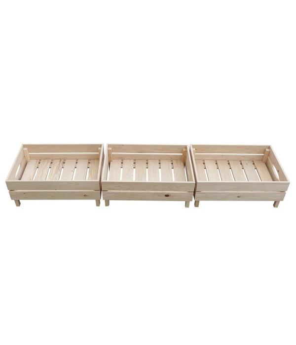 Praktischerweise kommen die Stapelkisten gleich in einem 3er-Set, in robuster und hochwertiger Verarbeitung. Dank der vier Füße auf der Unterseite der Kisten steht die Konstruktion stabil. Gute Luftzufuhr gewährt Ihrem Obst und Gemüse die gewünschte Frische und längere Haltbarkeit. Die Holzkisten lassen sich dank der seitlichen Griffe jederzeit bequem aufeinanderstapeln und auseinandernehmen. So können Sie beispielsweise auch große Früchte wie Melonen problemlos lagern, indem Sie Ihre Holzkisten einzeln nebeneinander verwenden. Der beste Platz dafür ist ein kühler dunkler Ort, zum Beispiel der Keller. Bestellen Sie Ihre HABAU Obst- und Gemüsekisten gleich jetzt und überzeugen Sie sich selbst!
