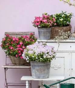 Die Japanische Azalee ‚Anouk‘ ist eine der schönsten frühjahrsblühenden Gartenpflanzen. Sie wächst kompakt und dicht mit grün glänzendem Laub. Durch die geringe Wuchshöhe von etwa 50 cm passt sie nahezu in jeden Garten und wächst auch in Gefäßen gut. Daher kann sie auch auf Balkon und Terrasse ihre Zierwirkung entfalten. Von April bis Mai erscheint eine Vielzahl an rosafarbenen Blüten, die den ganzen Strauch bedecken.