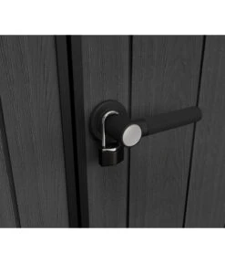 Durch die großen Doppeltüren des Keter Kunststoffgerätehauses Oakland 759 können auch sperrige Geräte und Gegenstände problemlos darin verstaut werden. Eine optimale Tageslichtbeleuchtung im Inneren wird durch das Seitenfenster und ein Oberlicht gewährleistet außerdem befindet sich im Dübel eine Entlüftung – so machen Bastelarbeiten richtig Spaß. Durch die metallverstärkte, stabile Bauart und das integrierte Türverschlusssystem aus Edelstahl ist im tepro Kunststoffgerätehaus Oakland 759 alles gut geschützt und diebstahlsicher untergebracht. Die Montage des Hauses ist aufgrund der vorgeschnitten gelieferten Nut und Feder Paneele sehr einfach und im Handumdrehen bewerkstelligt. Sie werden das praktische Keter-Haus schon bald nicht mehr missen wollen.