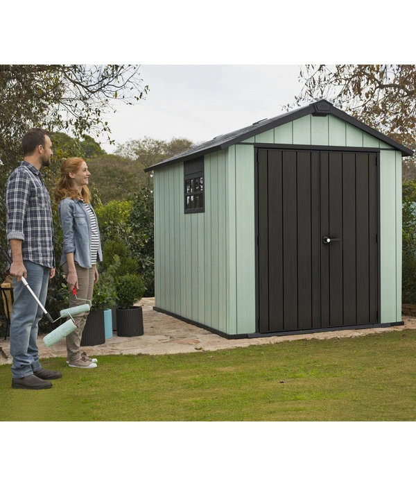 Das Keter Kunststoffgerätehaus Oakland 759 mit einer Grundfläche von 210 x 279 cm ist genau das Richtige für Bastler, Selbermacher und handwerksaffine Gartenbesitzer. Es ist aus einem hochwertigem DUOTECH™-Material hergestellt, das mit seiner natürlich rauen Holzoptik den täuschend echten Eindruck erweckt, es handle sich um ein Holzhaus. Die Oberfläche ist streichbar, so können Sie Ihrem Keter Kunststoffgerätehaus Oakland 759 eine ganz persönliche Note mit Ihrer Lieblingsfarbe verleihen. Das Keter Kunststoffgerätehaus Oakland 759 ist wartungsarm sowie nässe-, frost- und UV-beständig.