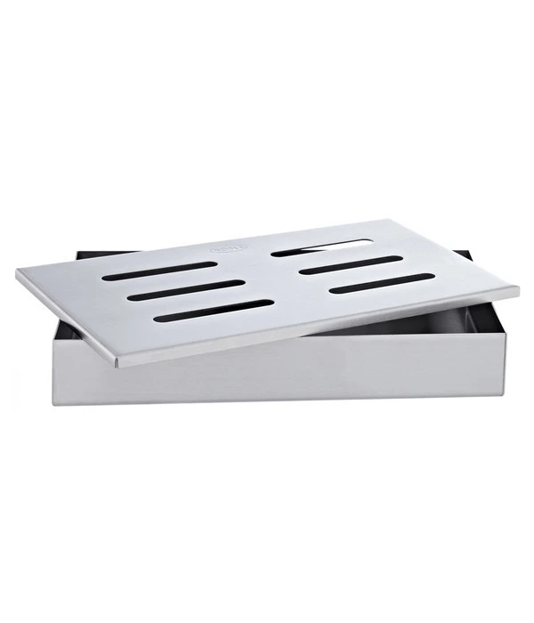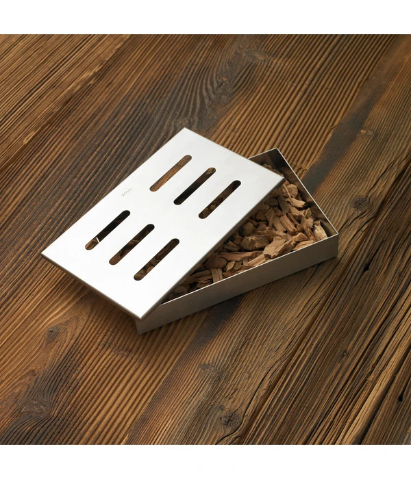 Sie möchten Ihrem Grillgut eine schmackhafte, rauchige Note verleihen, besitzen jedoch keinen Räucherschrank? Dann bietet Ihnen die Rösle Räucherbox, Edelstahl eine praktische Alternative. Die rechteckige Box mit einem Maß von 13,5 cm Breite x 21,5 cm Länge x 3,5 cm Höhe ist äußerst hitzebeständig und lässt sich in offenen oder geschlossenen Gas- und Kohlegrillsystemen verwenden. Zudem ist das Material Edelstahl besonders robust und pflegeleicht, sodass Ihnen die Räucherschale lange Freude bereiten wird.
