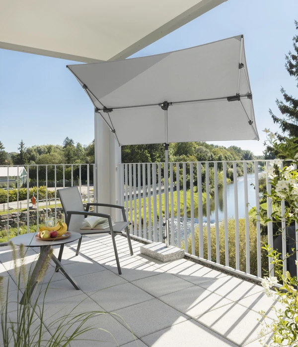 Sie wollen Ihre freien Sommer-Sonnenstunden gerne bestmöglich genießen und sind schon lange auf der Suche nach einer intelligenten, besonders variablen Sonnenschutzlösung, die auch die etwas kniffligeren Situationen lösen kann? Dann sollten Sie sich einen Schneider Sonnenschirm Novara zulegen. Denn dieser besondere Schirm kann mehr. Die bespannte Fläche von 190 x 140 cm lässt sich nicht nur um 360° drehen, sondern auch neigen und sogar seitlich zum Mast verschieben. Mit anderen Worten: Die Möglichkeiten sind nahezu unendlich viele! Ganz gleich also, ob die Sonne gerade hoch oben steht, ob sie später tief steht, morgens aus Osten und nachmittags aus Westen strahlt, Sie schaffen sich Ihren Schatten flexibel und an die jeweilige Situation angepasst. Das ist auf Terrasse oder Balkon sehr angenehm und kommt in einigen Stellungen einer Markise gleich – und das ohne Bohren. Sie wollen den Schneider Sonnenschirm Novara, diesen superflexiblen Sommerhelfer, unbedingt besitzen? Dann schlagen Sie zu!