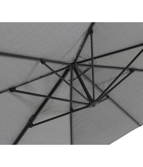 Der Siena Garden Ampelschirm Cirrus lässt sich natürlich auch ganz bequem öffnen und schließen. Alles, was Sie dafür tun müssen, ist das Betätigen der praktischen Kurbel. Ihr neuer Sonnenschutz überzeugt außerdem mit einem enorm soliden Gestell aus pulverbeschichtetem Aluminium und einer äußerst robusten Bespannung aus hochwertigem Polyestergewebe mit 240 g/m² Stoffstärke. Darüber hinaus ist die hochwertige Verarbeitung an jedem Detail zu erkennen – von der Strebe bis zur Schraubverbindung.