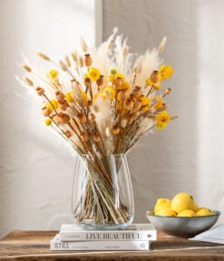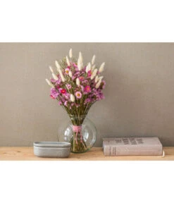 Wenn die Blütezeit im Garten langsam zu Ende geht und es draußen immer ungemütlicher wird, würden Sie am liebsten alle Blüten, Gräser und Samenstände mit ins Haus nehmen, sie „retten”, bevor sie zerfallen oder ihre Farbe verlieren. Beschenken Sie sich stattdessen doch einfach mit Trockenblumen wie diesem feinen Bündel mit Hasenschwanzgras. Dabei handelt es sich um die uns allen wohlbekannten Ähren, die so weich und flauschig aussehen, dass man sie unbedingt berühren möchte. Filigrane Schmuckstücke, die getrocknet noch genauso so schön sind, wie sie es zu Lebzeiten waren und mit denen sich unendlich viele Deko-Möglichkeiten eröffnen. Trockenblumen wie das Hasenschwanzgras zeichnen sich durch ihre attraktive Silhouette aus und bringen einen natürlichen Look in Ihre Raumdekoration. Besonders beliebt sind sie selbstverständlich auch deshalb, weil sie keinerlei Pflege brauchen, fast ewig halten und sich mit ihnen sogar Gefäße schmücken lassen, die nicht wasserdicht sind. Legen Sie also schon bald los und lassen Sie Ihre Ideen mit Hilfe von getrocknetem Hasenschwanzgras Gestalt annehmen.