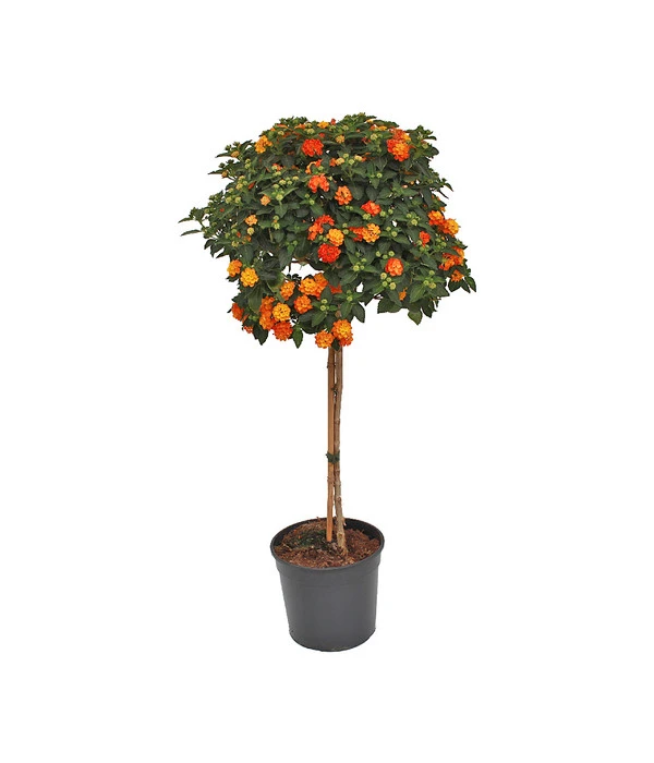 Mit Kübelpflanzen kommt Sommer, Sonne und Genuss auf Balkon und Terrasse – keine Sommer-Saison will man ohne sie verbringen. Die Lantane, besser bekannt unter dem Namen Wandelröschen ist einer dieser Kübelpflanzen-Klassiker, an dessen Blütenpracht und prägnanten Düften man sich regelrecht berauscht. Das Farbspektrum des Wandelröschens ist enorm, doch am beliebtesten sind die orangen Blüten, die auch dieser Dehner Premium Solitärstamm zeigt. Hat man sich für eine Farbe entschieden kommt man auch in den Genuss von anderen, den mit dem Auf- und Verblühen der Blütenköpfe zeigt die Lantane einen faszinierenden Farbwechsel, der einem spritzigen Fruchtcocktail gleicht. Das erklärt auch woher das Wandelröschen seinen Namen hat – es ist stetig im Wandel.