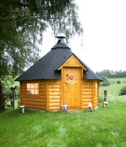 Ein neuer Trend aus Finnland ist gerade dabei, unsere Gärten zu erobern. Mit urig-gemütlichen Grillhütten, in denen Sie das ganze Jahr mit der Familie und Freunden grillen können. Unabhängig vom Wetter. Ja, manche Kota-Fans meinen sogar, dass das gesellige Beisammensein in so einer Hütte noch schöner ist, je ungemütlicher das Wetter draußen ist. Aber vielleicht probieren Sie es selbst aus – in der Wolff Finnhaus Gartenhaus Grillkota Basic 9! Mit dem hohen Dach, den Sprossenfenstern und dem aufwendig gearbeiteten Eingang sieht das Häuschen fast wie ein Mini-Schlösschen aus, im Inneren aber werden Sie von einer einzigartigen Atmosphäre empfangen, für die neben dem naturbelassenen Holz auch die runde Bauweise mit der Sitzbank um die Grillfläche verantwortlich ist. Bestellen Sie gleich die Wolff Finnhaus Gartenhaus Grillkota Basic 9 und freuen Sie sich jetzt schon darauf, wie Sie sich bald mit Ihren Freunden um den Grill versammeln und die köstlichsten Düfte durch den Raum ziehen!
