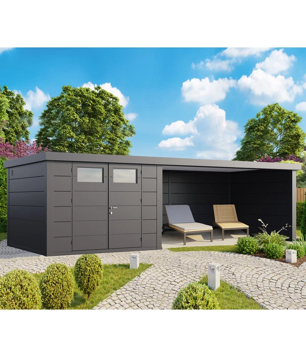 Mit dem Gerätehaus Eleganto 3330 verleihen Sie Ihrem Garten einen exklusiven Touch. Es wurde aus pulverbeschichtetem Stahl gefertigt, benötigt keinerlei zusätzliche Pflege oder Anstriche und begeistert als langlebiges, UV-beständiges Lagerhaus. Dank der stabilen Bauweise und der soliden Dachkonstruktion inklusive Isolierung und Regenrinne bietet es hervorragenden Schutz vor Wind und Wetter. Das Gerätehaus ist unkompliziert im Aufbau und überzeugt mit einer hohen Türe, durch die Sie auch sperrige Dinge ins Innere bringen können. Entscheiden Sie sich jetzt für das attraktive Wolff Finnhaus Gerätehaus Eleganto 3330 und genießen Sie eine wunderschöne Zeit in Ihrem Garten!